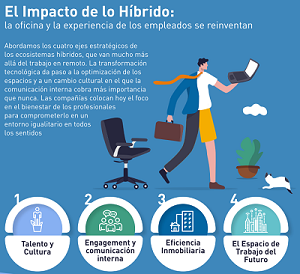 Para abordar estas cuestiones, el informe 'El Impacto de lo Híbrido' recoge las principales claves de la llamada Revolución Flexible, poniendo el foco en aspectos fundamentales para la implementación del trabajo híbrido. En dicho estudio, las cuatro empresas analizan la realidad actual desde sus particulares perspectivas, y buscan dar respuesta a las compañías que están planteando un cambio de modelo de trabajo y necesitan claves para hacerlo de forma sostenible.