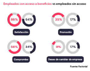 Además, más de un tercio de los empleados que aún no dispone de beneficios como transporte, guardería o gimnasio desearía tener acceso a ellos, lo que indica una demanda latente por mayor compensación emocional.